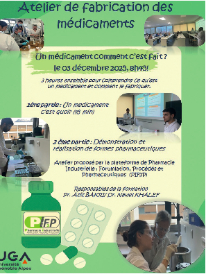 ATELIER Découverte : Un médicament, comment c’est fait ? le 3 Décembre 2025 de 8h45 à 12h30, au 120 rue de la Piscine à St-Martin d’Hères
